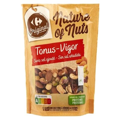 Carrefour Original Protein Nature Of Nuts Mix is a delicious and nutritious snack option. This 120g mix is packed with a variety of nuts such as almonds peanuts cashews and walnuts which provide a good source of protein and healthy fats. The mix is great for snacking on the go adding to trail mixes or incorporating into recipes. It is a perfect choice for those who are looking for a satisfying and wholesome snack.